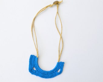 Royal blue necklace crochet statement necklace eco jewelry boho elegant summer free form