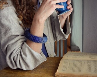 Woolen bangle bracelet/ blue ombre modern crochet jewelry/ neo tribal