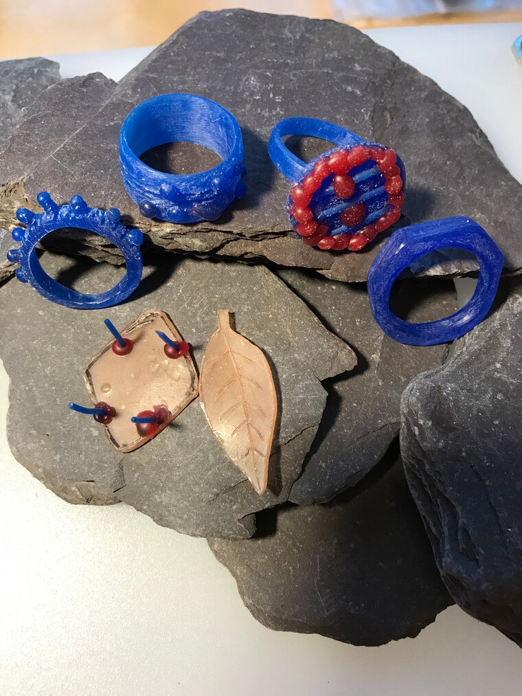 wax carvings before going to the casters to be lost wax cast in sterling silver. -
