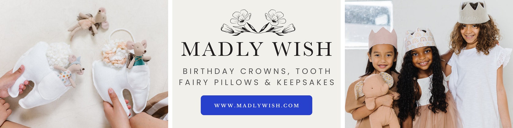 We hope you enjoy the collection of personalized Tooth Fairy Pillows, Birthday Crowns, Nursing Pillow Covers & Home Decor we’ve offered since 2012.