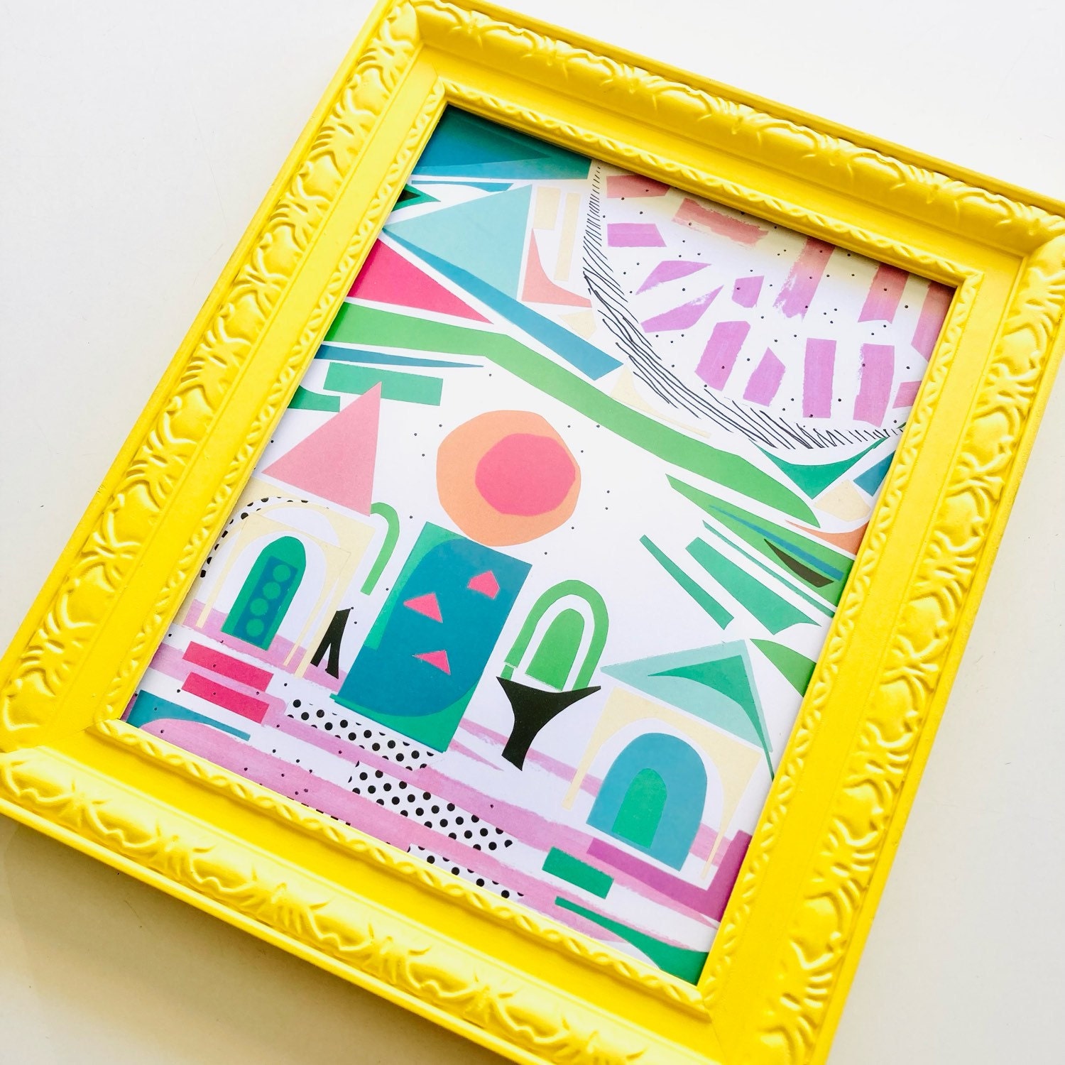 Painted vintage frame with collage. Colors are bright and happy!