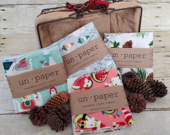 Christmas and Winter - Un Paper - Reusable Napkins - Single-Ply - Set of 6 | Cloth Napkins | Cloth Wipes | Cloth Towels | from mamamade