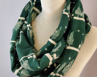 Hidden Pocket Infinity Scarf - In the Woods Green - Cotton Flannel - Teacher Gift - Stocking Stuffer - Gift Exchange - Christmas and Travel
