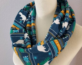 Hidden Pocket Infinity Scarf - Dinosaur Fair Isle - Cotton Flannel - Teacher Gift - Stocking Stuffer - Gift Exchange - Perfect for Travel