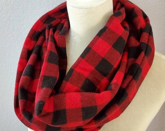 Hidden Pocket Infinity Scarf - Red Buffalo Plaid - Cotton Flannel - Teacher Gift - Stocking Stuffer - Gift Exchange - Christmas and Travel