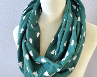 Hidden Pocket Infinity Scarf - Pine Trees on Green - Cotton Flannel - Teacher Gift - Stocking Stuffer - Gift Exchange - Christmas and Travel