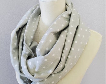 Hidden Pocket Infinity Scarf - Light Grey Dots - Cotton Flannel - Teacher Gift - Stocking Stuffer - Gift Exchange - Perfect for Travel