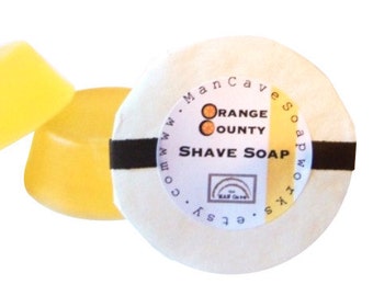 SHAVE Soap -ORANGE COUNTY - with Bentonite Clay and Moisturizing Shea Butter - refills for shaving mugs too by Man Cave Soapworks
