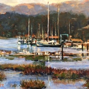 I was born at Offett Air Force Base, Nebraska in 1953. My Dad was 1st in the Navy then became a career Air Force firefighter. We moved a lot, even to Okinawa, Japan. When my Mom became ill I was placed in the Masonic Children's Home in St. Louis, Mo. where I lived for 4 years. When my Dad got a hardship discharge from the Air Force he took the family to Fontana, Ca., where I went to Fontana High School . I had a small studio in the back room of my parents antique store. I painted and tended the store on weekends.We moved to Simi Valley, Ca. my junior year where I graduated from Simi Valley High School. After 2 children and a divorce, I went to Pittsberg State University for one year then moved to Kansas City, Mo. I worked and went to art school at the Kansas City Art Institute on scholarships, grants & loans. I finished my BA at Cal State Stanislaus, my teaching credential from National University. Before starting to teach at Bear Creek High School, in Stockton, Ca. I took workshops through out California. I studied at St. Marys Art Center in Virginia City, Nevada. I studied under Dale Laitinet, Delores D'Dharr and Ziggy Zancowski. I also to Plein Aire workshops from Charles Movalli, Edward Norton Ward and Albert Handell. I deeply admire Wayne Thiebaud's use of color and Chuck Close for his use of pattern and unbelievable determination to create. Both inspire me. I started my shop while I was teaching art at the high school full time and working on my M.F.A. in painting. I put it on hold realizing I needed to wait till I retired to really learn how to run an Etsy store. I would like to sell my paintings without leaving home, except trips to the post office, which I do frequently since I do not get mail delivered to my rural home. My days are caring for my garden, my fur babies and time with my paints. I prefer plein aire painting but when that is not possible I shoot my own photos to paint from.