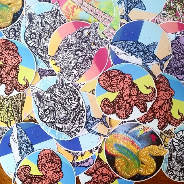 My Tangles are a bit of realism with a unique twist. Inspired by the patterns and ornate designs of zentangle and Native designs from around the world. I start by hand painting each animal with individual details, and keep them bright and fun with lots of color. Each pattern is done as I go creating each animals shape with twist and dots. I draw a lot of inspiration from Native Art of all kinds, the piecing of shapes to make an amazing painting that is unique to its region. I am inspired by the wonderful creatures of the pacific northwest where I call home, and the wild ones I have yet to meet.
