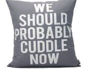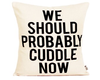 We Should Probably Cuddle Now Pillow Cover // 16"x16" natural/oatmeal Silk Screen Pillow Cover