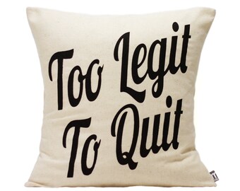 Too Legit To Quit Pillow Cover // 16"x16" natural/oatmeal Silk Screen Pillow Cover