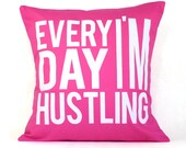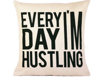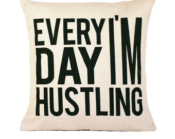 Every Day I'm Hustling Pillow Cover // 16"x16" Silk Screen natural/oatmeal Pillow Cover