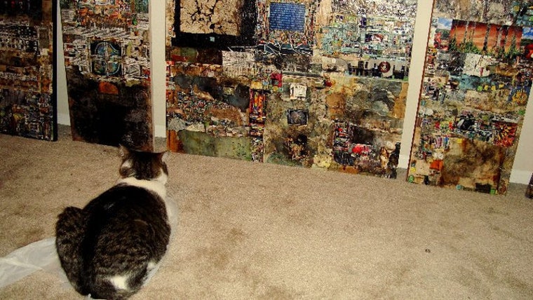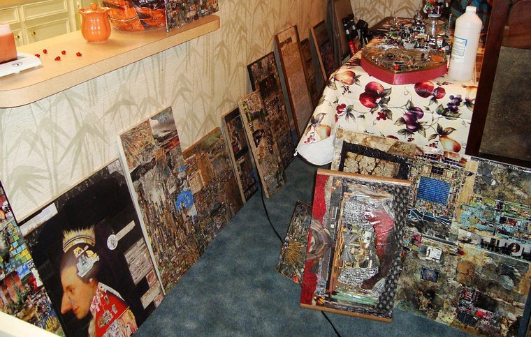 Hello world. I've done this before, selling prints and originals ... in 2011. You can imagine how much activity and change happens to any one person for nearly six years. I'll spare you the long details on my story, yet give you a few highlights on time spent. My last art appearance was in 11' at a festival event titled: Art Outside. The Arts Alliance Center of Clear Lake, a gallery I participated in since 2005 turned into a gas station around this time. Finally in 12' I fell in love again, and turned my interest back into writing classical music. After writing studies for multiple pianos, I found a new tic from an old hobby - writing strange, sometimes encoded poetry. In 2014 I self published a book, but encouraged to release it as free PDF. Probably about ten people read it, but I was already hooked. I started writing short stories, but as the paperback version was reaching 400 or so pages, I found wordpress.com and decided to share them independently instead. If I wasn't doing that it was composition or electronic music. I have not worked on collage since a two month project in 2014.