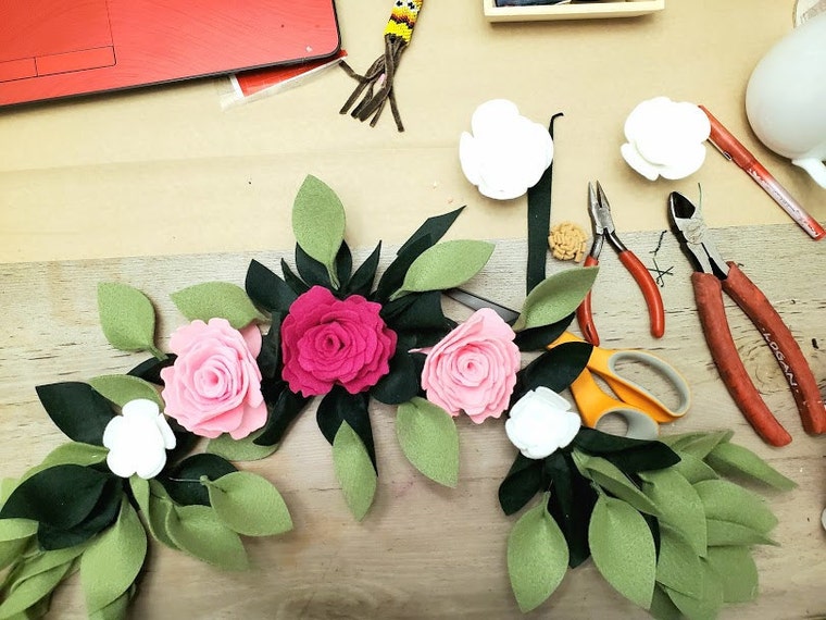 My kitchen table is now my crafting space where I am creating beautiful garlands, headbands, and wall decor. -