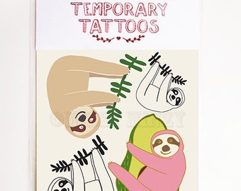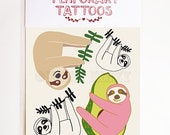Kids Temporary Tattoos Sloths, Pink, Avocado, Quirky, Washable Tattoos, Stocking Stuffer, Fake Tattoos, Party Favor Bag, For Fun