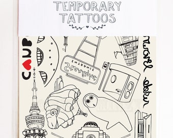 Temporary Tattoos / Canberra / Parliament House / Canberra Bus Shelter / Travel Souvenir Gift / Stocking Stuffer / For Fun