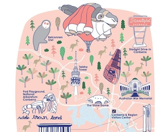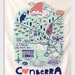 NEW 100% Linen Screen Printed Canberra Map Tea Towel, Canberra, Souvenir, Linen Tea Towel, Skywhale, Canberra Icons