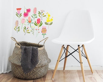 Reusable Fabric Wall Decals, Australiana Flora, Protea, Eucalyptus, Flowers, Gift Ideas, Home Decor, Kids Room