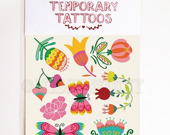 Temporary Tattoos Flower Garden, Butterfly, Folksy Flowers, Floral, Daisy, Fake Tattoos, Wedding, Party Favor Bag, For Fun