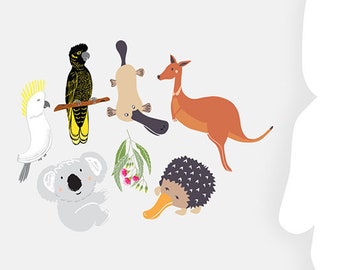 Reusable Fabric Wall Decals, Australiana Animals, Yellow-tailed Black Cockatoo, Sulphur-crested Cockatoo, Gift Ideas, Kids Room