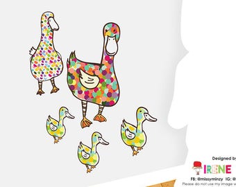 Reusable Fabric Wall Decals / Hungry Ducks / Removable Wall Decals / Wall Art / Gift Ideas / Nursery Room / Kids Room / Home Decor