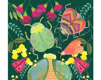 Bugs and Beetle / Floral and Fauna / Plant / Australian Nature / Green / Art Print / Home Decor / Giclee Print / Archival Art Print A4