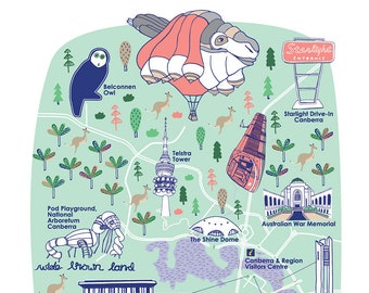 Canberra Map / Pale Green / Art Print / Home Decor / Giclee Print / Archival Art Print A4