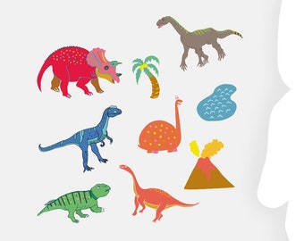 Reusable Fabric Wall Decals / Dinosaurs 2 Removable Wall Decals / Wall Art / Gift Ideas / Nursery Room / Kids Room / Home Decor