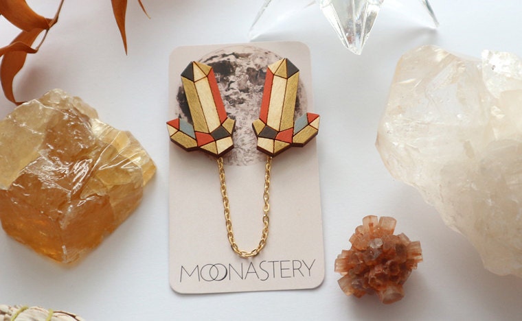 Nature, cosmos, science, geometry, tarot, vintage everything, different cultures, symbols and archetypes to name a few. Inspiration can come from many unexpected places so I try to keep a notebook with me all the time to record or sketch my ideas (and majority of them is yet to be realized). I've always loved minerals and gemstones, I'm fascinated by patterns, the fact that they can be repeated over and over again and you can't see the edges, they give me a sense of continuity and infinity. I like creating computer designs, it's a medium which allows me to make things real, from an image in my head into a tangible thing, be it fabric, print or laser cut piece of jewellery but I also have a need to get my hands dirty, so I assemble, paint, varnish, etc.