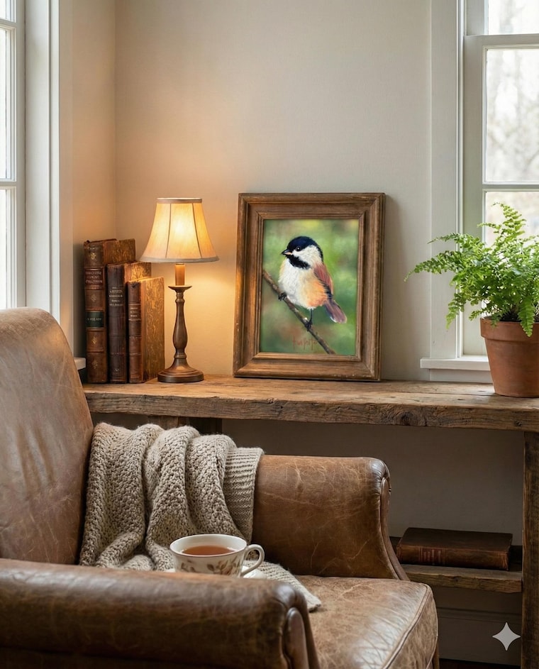 My work is inspired by the quiet moments that often go unnoticed — a bird resting on a branch, soft morning light on leaves, the stillness right before the day really begins. Each piece starts as my original artwork, created with archival, professional materials, and then is lovingly transformed into fine art prints and nature-inspired gifts through trusted print-on-demand partners or printed in my own studio.