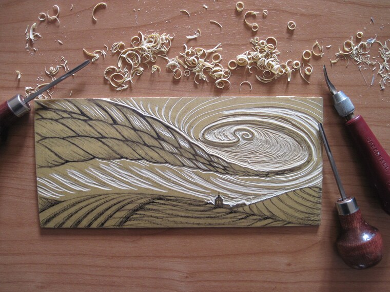 In 2006, after walking the Camino de Santiago, I felt the need to make a series of black & white images. I said, "Why not prints?" I immediately carved 20 blocks, and was hooked. I have not stopped since.