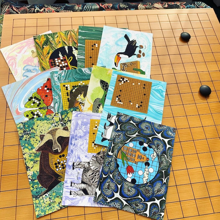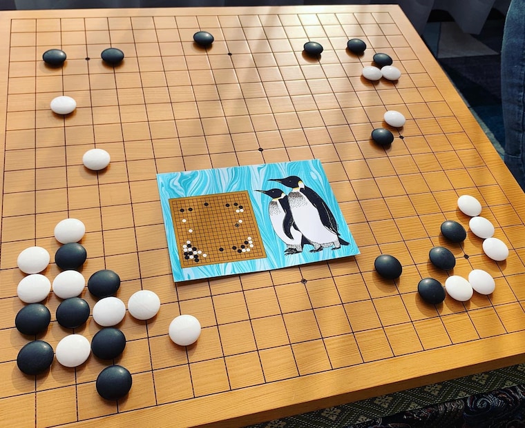 Postcard showing AlphaGo's famous move 37 in game 2 versus Lee Sedol