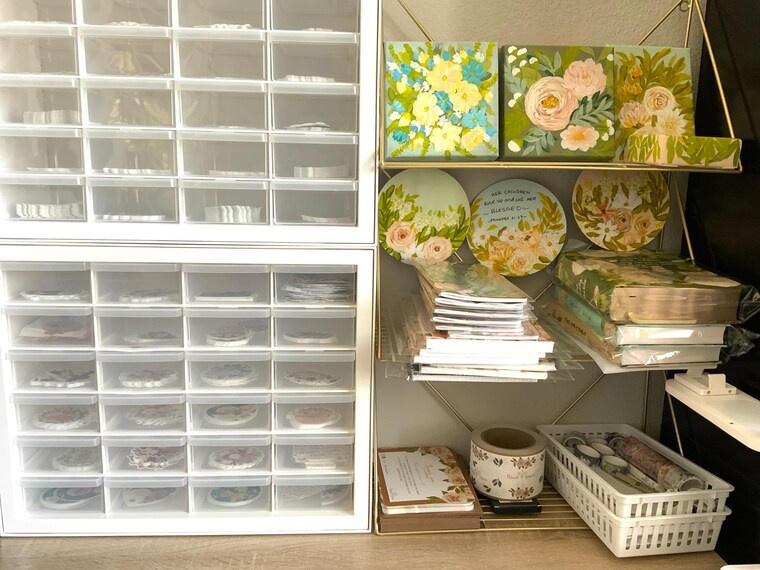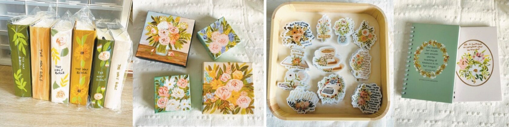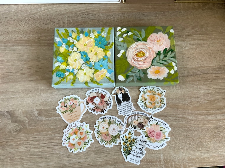 Painted canvases and scripture inspired stickers to remind you of God and his promises.