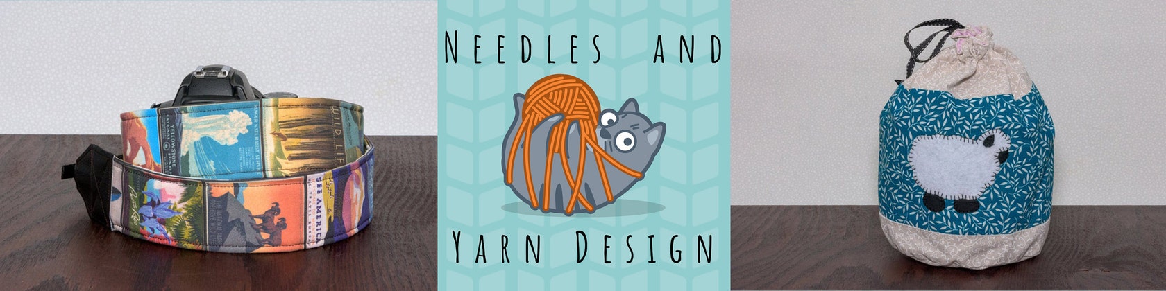 Knitting bags and camera straps seems like an odd combination, I know. I initially started with knitting bags, as my favorite hobby (besides sewing) is knitting. I used to take my knitting with me in a plastic grocery bag. The knitting needles always poked through and it was *incredibly* frustrating. One day I sat down and decided to design a solution to my problem. The result: Adorable, practical bags that would allow me to travel with my project without the frustration. The project bags even had the added benefit of keeping my cats' paws out of my projects at home.