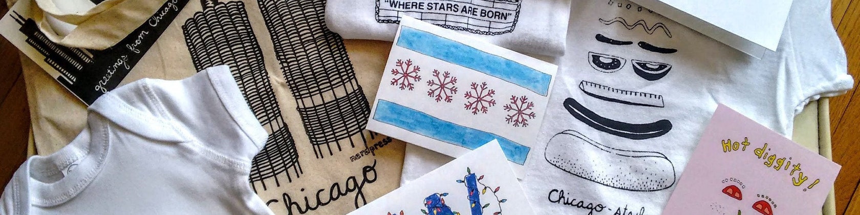 As the years went by and I started selling my cards in local Chicago shops, the line grew to include holiday cards and other gift items. Soon people were asking me if I could make Chicago-themed baby clothes. I thought, why not?! So I revisited my notes from a silkscreening class I took a while back, and boom, started screen printing baby clothes!