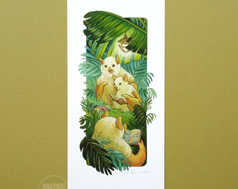 Hi there! I'm Nicole Gusafsson and my shop is "Nimasprout". I create original paintings with gouache and ink. From these illustrations I make prints and other paper goods to sell. Common themes in my work are adventure, discovery, and exploration of the environment and natural world. I currently live in the Pacific Northwest with my husband and pets and work as a full time artist + illustrator.
