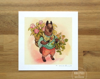 Alpaca Flower Guardian - Mini Fine Art Print