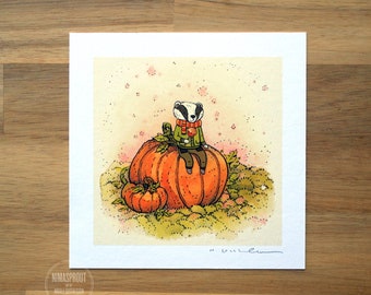 Autumn Badger - Mini Fine Art Print