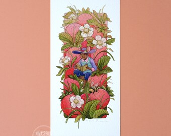 Strawberry Mouse Reading - Mini Fine Art Print by Nicole Gustafsson