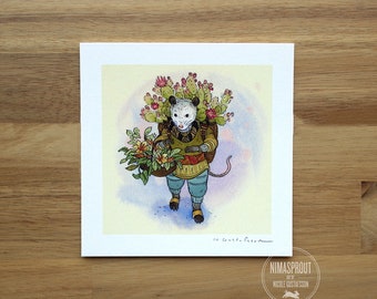 Opossum Flower Guardian - Mini Fine Art Print