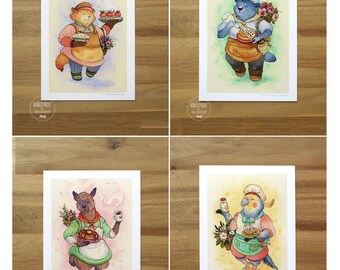 Animals and Baked Goods - 4 PIECE SET - Fine Art Print by Nicole Gustafsson