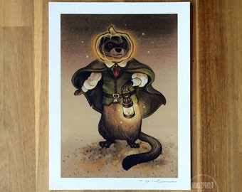 Pumpkin Ferret - Fine Art Print by Nicole Gustafsson