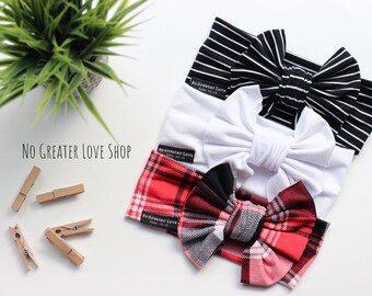 Plaid Holiday Headband Bundle - Turban Headband - Big Bow Headband - Knotted Headband - Newborn to Adult Sizes - All Profits to Missions