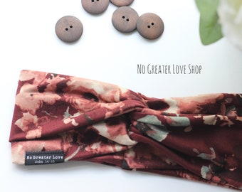 Beautiful Maroon Floral Headband - Turban Headband - Bow Headband - Big Bow - Top Knot - Headwrap - Newborn to Adult - Buy One Give One