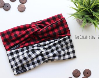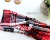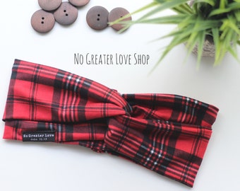 Red Buffalo Plaid Turban Headband - Knotted Headband - Bow Headband - Top Knot Headband - Newborn to Adult - All Profits to Missions