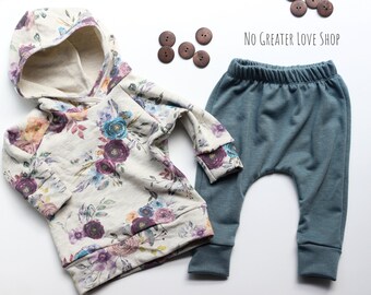 Cozy Oatmeal Floral Hoodie and Pants Set - Newborn through 5T - Harem Pants - French Terry - Perfect Fall Outfit - All Profits to Missions