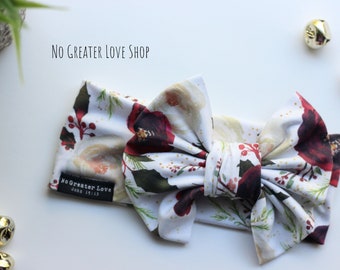 Christmas Holly Floral Headband - Turban Headband - Bow Headband - Top Knot Headband - Newborn to Adult - All Profits to Missions