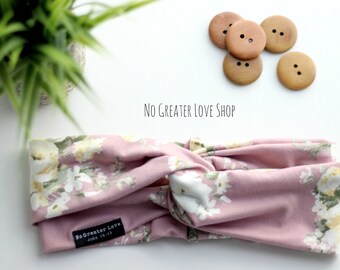 Blush Floral Headband - Turban Headband - Top Knot - Bow Headband - Head Wrap - Adult Child Infant Sizes - Buy One Give One - Big Bow