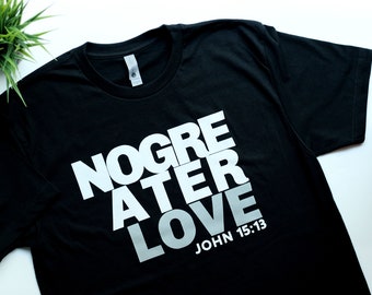 Modern No Greater Love Black T-Shirt - Slim Fit - Size Small through XXL - All Profits to Missions